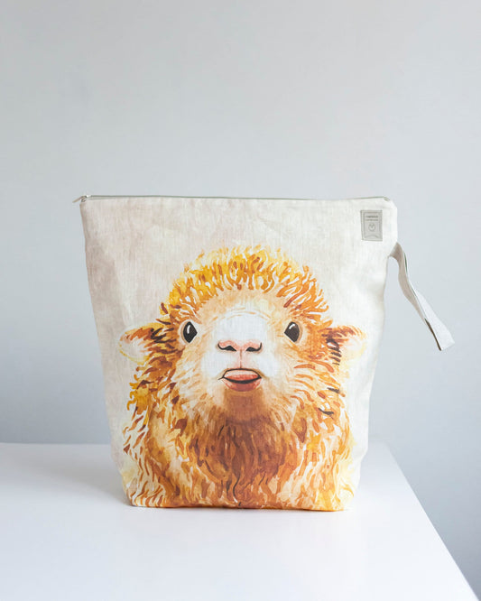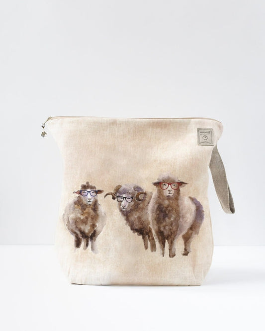 Project Bag with zipper with sheep print. Yarn organizer. Small, Medium or Large